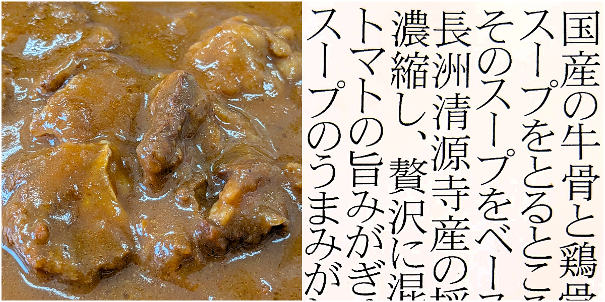 パッケージの裏面に、カレーについての説明文が載っています。「長洲清源寺産の採れたてのトマトを」などとあり、これが製品名の由来のようですね。